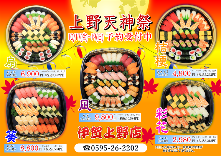 ※市場・ネタの都合により一部内容に変更がある場合はご了承ください。