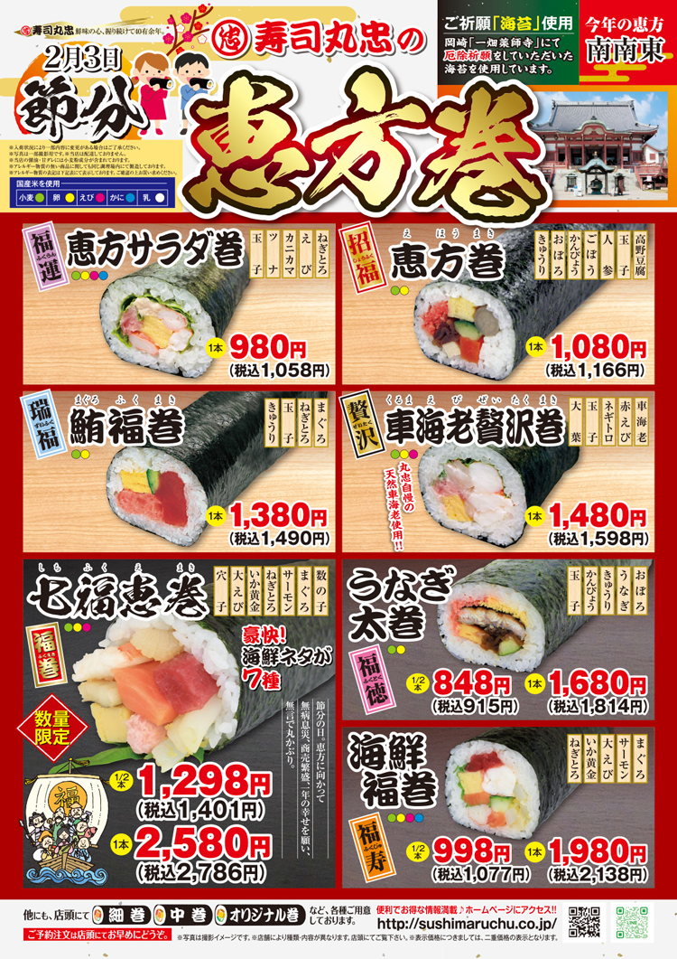 今年の恵方は『南南東』!大好評!寿司丸忠の恵方巻